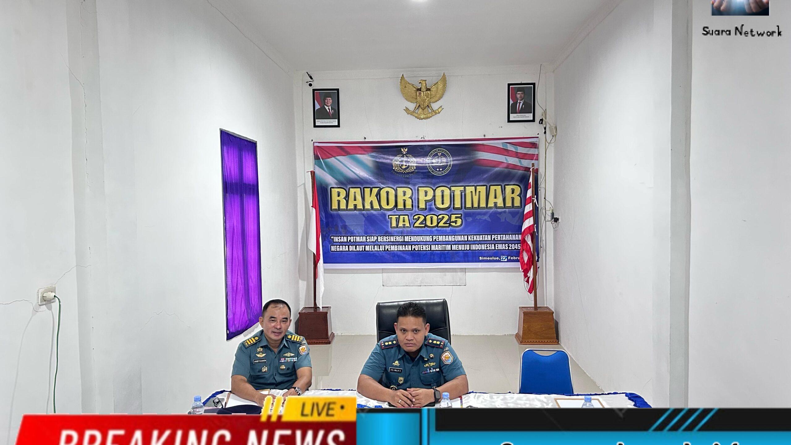 TNI AL, Simeulue,- Komandan Pangkalan TNI Angkatan Laut Simeulue Letkol Laut (P) Oyu Mulia Sukmana, S.T., M.T., M.Tr.Opsla., didampingi oleh Paspotmar Lanal Simeulue Kapten Laut (KH) Arief Rahman Hakim berpartisipasi dalam Rapat Koordinasi Potensi Maritim TNI AL Tahun 2025 yang mengangkat tema “Insan Potmar Siap Bersinergi Mendukung Pembangunan Kekuatan Pertahanan Negara di Laut Melalui Binpotmar Menuju Indonesia Emas Tahun 2045”. Kegiatan ini dilaksanakan secara Video Conference (Vicon), Kamis (27/2/2025).