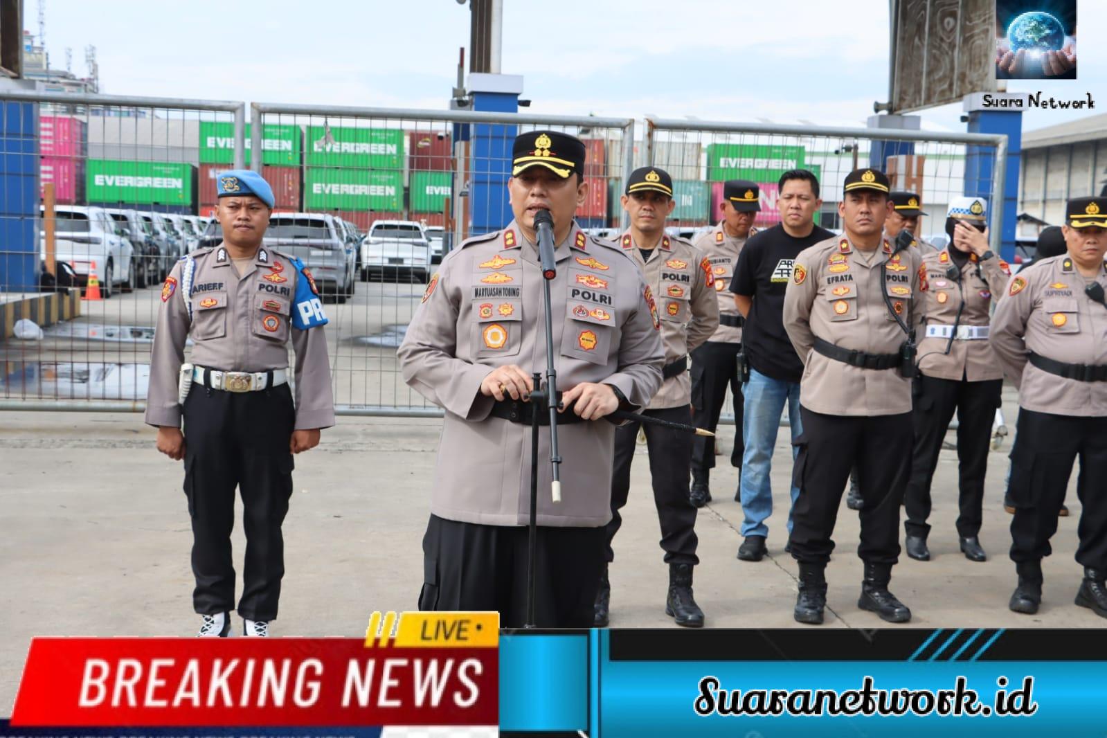 Jakarta Utara – Kapolres Pelabuhan Tanjung Priok pimpin Apel Pengamanan aksi unjuk rasa dari Federasi Buruh Transportasi Pelabuhan Indonesia (FBTPI), menggelar aksi damai di depan Pos 9 Pelabuhan Tanjung Priok Jakarta Utara, Minggu (20/4/2025) pagi.
