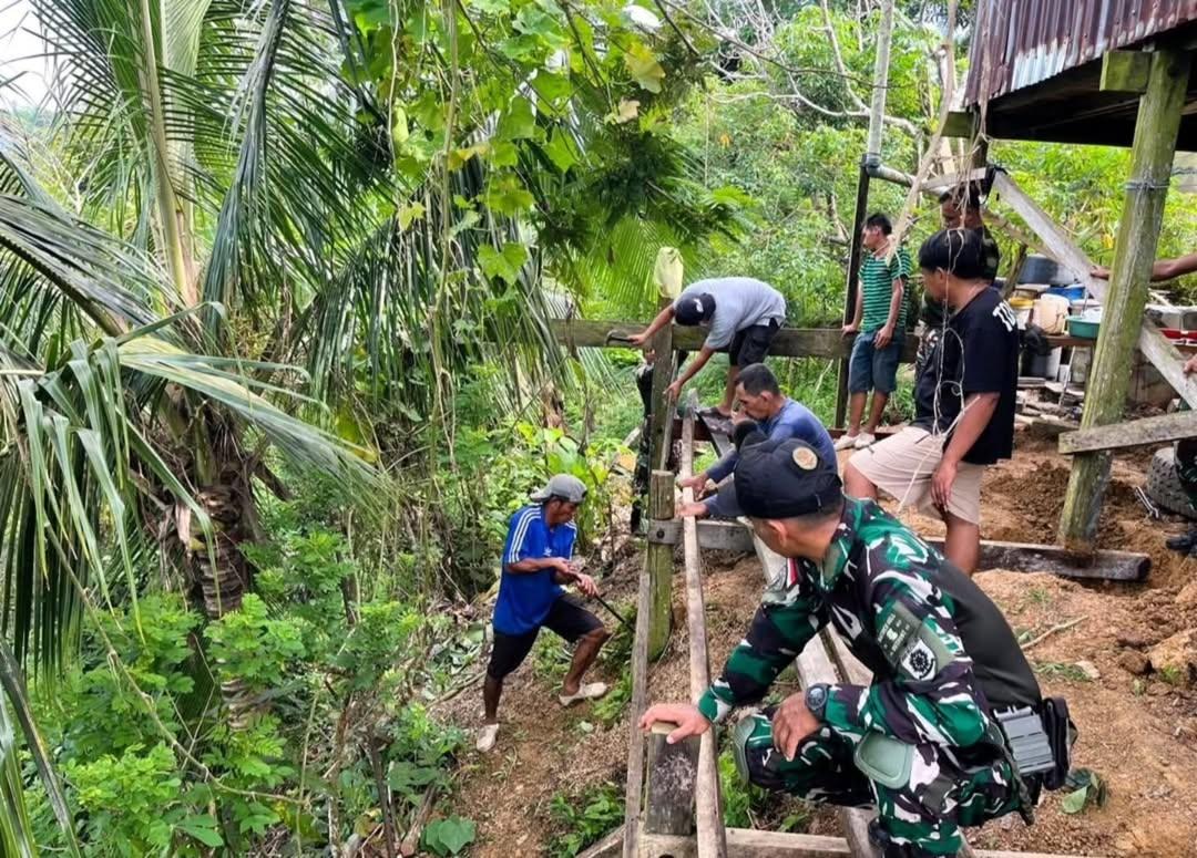 Nunukan – Dalam rangka mempererat kemanunggalan TNI dengan rakyat, Satgas Pamtas RI–Malaysia Yonarmed 11 Kostrad Pos Bukit Keramat turut membantu proses pembangunan rumah milik Bapak Andi Muchtar, warga Desa Bukit Keramat, Kecamatan Sebatik Barat, Kabupaten Nunukan, Kalimantan Utara. Senin (30/6/2025).