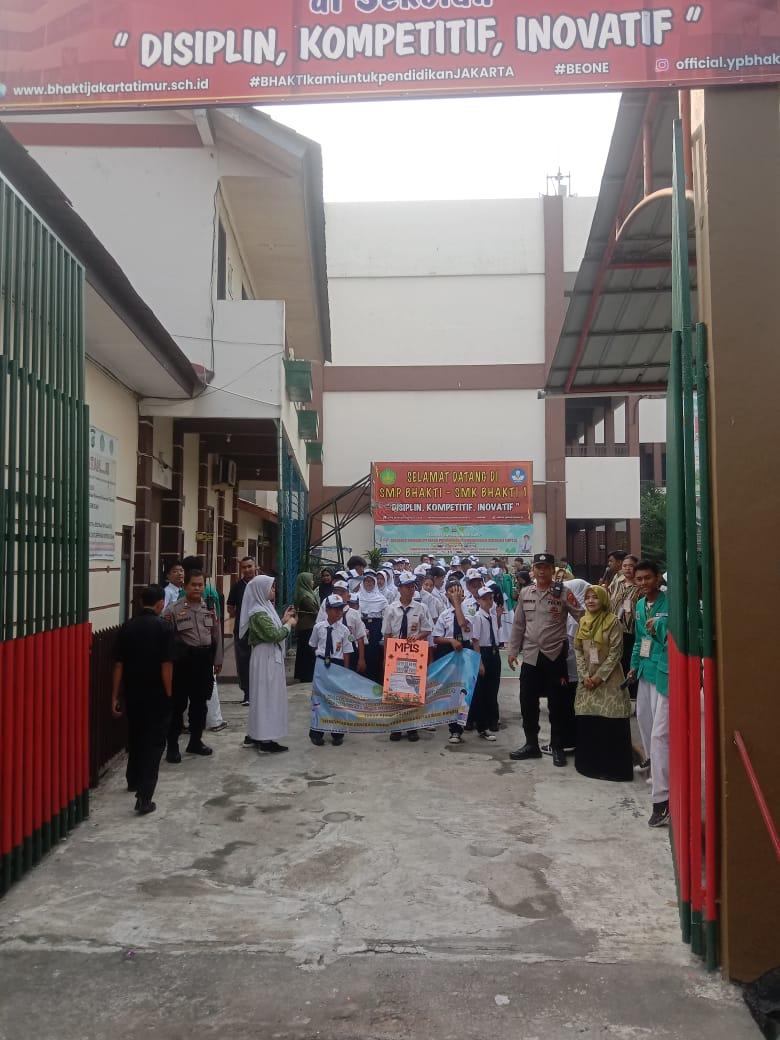 Kegiatan yang berlangsung sejak pukul 08.00 WIB ini mengambil rute dari sekolah Bhakti I di Jl. Perindustrian, melintasi Jl. Permata – BKKBN – Jl. Abdul Khoirot – dan kembali ke sekolah. Jalan santai ini diikuti antusias oleh para siswa, guru, dan turut dipantau langsung oleh Panit 2 Binmas AIPTU Bambang DS bersama Kapospol Kebon Pala AIPTU Bambang W.