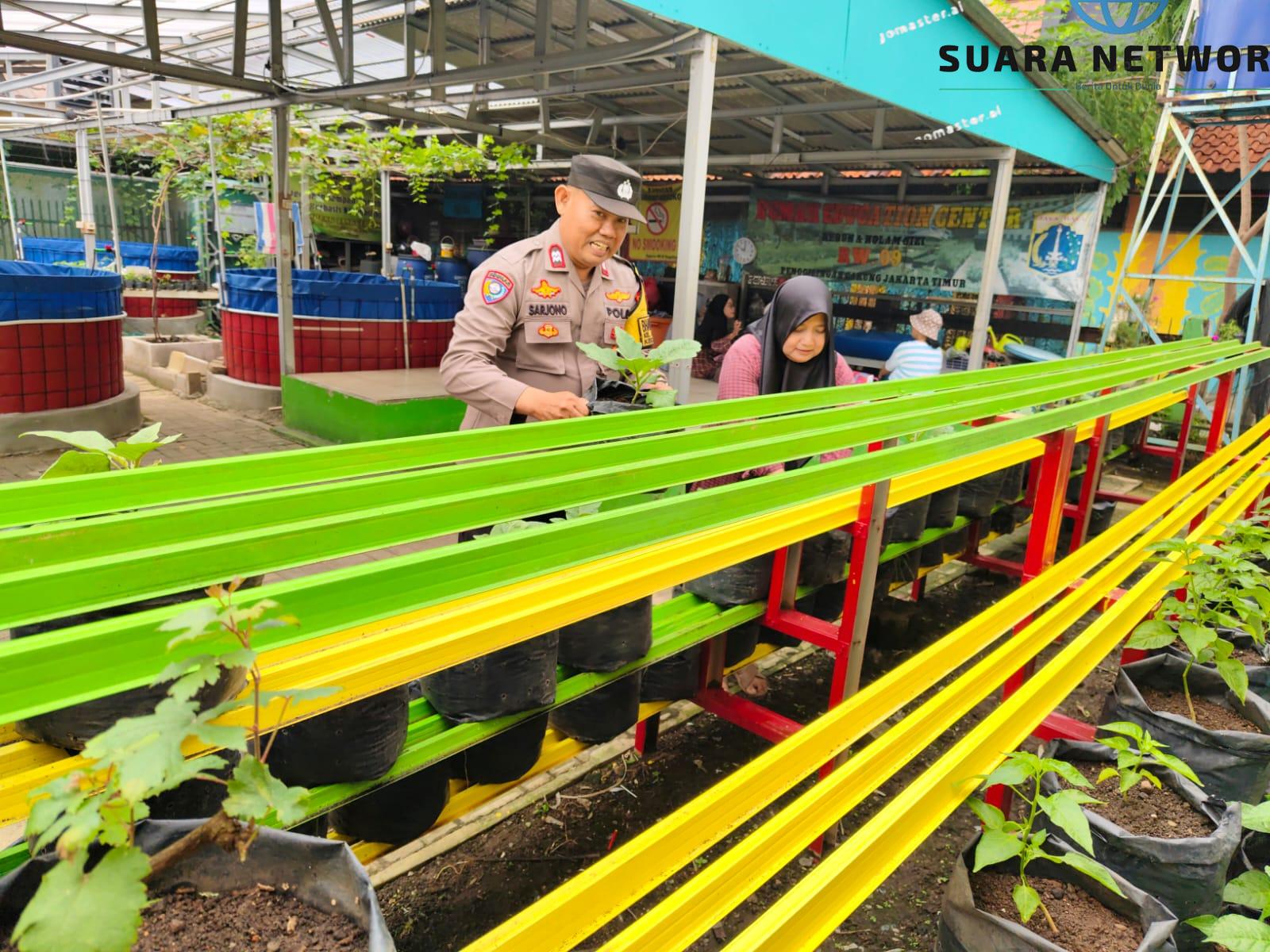 Kapolsek Cakung, Kompol Widodo Saputro, S.H., M.H., memberikan apresiasi atas peran aktif masyarakat dalam memanfaatkan lahan sempit menjadi sumber pangan bergizi.