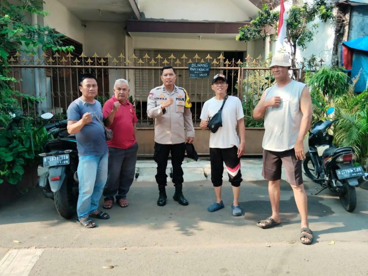 Dalam kunjungannya, Aipda Erwin bertemu dengan Ketua RT 12 RW 05, Bapak Rudi, bersama tokoh masyarakat setempat, Bapak Budi, serta beberapa warga yang turut hadir berdialog langsung.