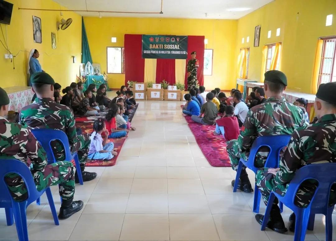 Nunukan, Suaranetwork – Satgas Pamtas RI–Malaysia Yonarmed 11 Kostrad kembali menunjukkan kepeduliannya kepada masyarakat perbatasan. Kali ini, personel Pos Kotis melaksanakan kegiatan bakti sosial dengan membagikan perlengkapan sekolah dan kebutuhan ibadah kepada anak-anak di Panti Asuhan Gabriel Manek, Kelurahan Selisun, Kecamatan Nunukan, Kabupaten Nunukan. (3/9/2025).