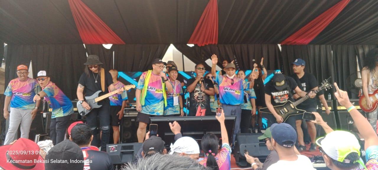 Bekasi, Suaranetwork – Acara Galaxy RUN 2025 yang digelar di area parkir Gereja Bartolomeus Kota Bekasi, Sabtu (13/9/2025), sukses dan meriah. Band Lawang Pitu berkolaborasi dengan musisi papan atas seperti John Paul Ivan, Irang Boomerang, Edwin Coklat, dan Cindy Saraswati Takeover, serta gitaris Eeat Sjahranie Edane, membawakan 17 lagu yang menghibur para peserta dan penggemar.
