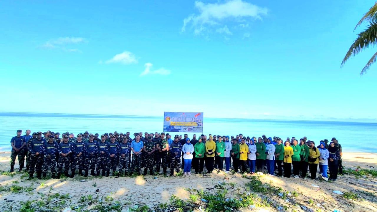 Sambut HUT Ke-80, TNI di Aru Lakukan Karya Bakti Bersih Pantai