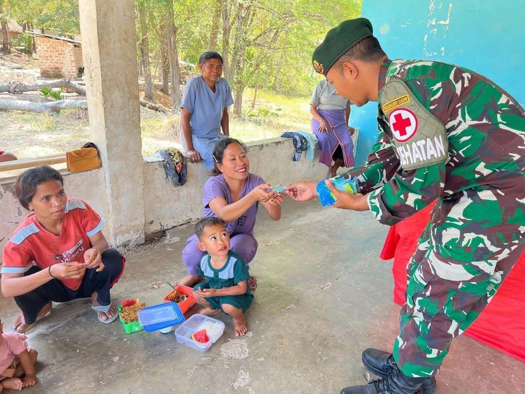 “Kegiatan ini diadakan di Desa Nainaban, kami turut membantu dan mendukung program yang sudah ada agar dapat berjalan lancar dan terdistribusi tepat sasaran kepada anak-anak dan Balita.” ujar Danpos Baen, Letda Arh Sulthan.