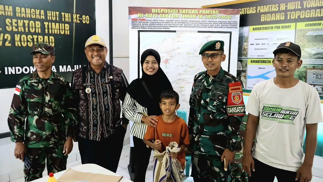 Belu – Dalam rangka memperingati Hari Ulang Tahun (HUT) ke-80 Tentara Nasional Indonesia, Satgas Pamtas RI–RDTL Yonarmed 12 Kostrad menggelar kegiatan khitanan massal gratis bagi anak-anak di wilayah perbatasan Kabupaten Belu, Nusa Tenggara Timur. Kegiatan ini disambut antusias oleh masyarakat yang melihatnya sebagai wujud nyata kepedulian TNI terhadap kesehatan generasi muda. Kamis (02/10/2025).