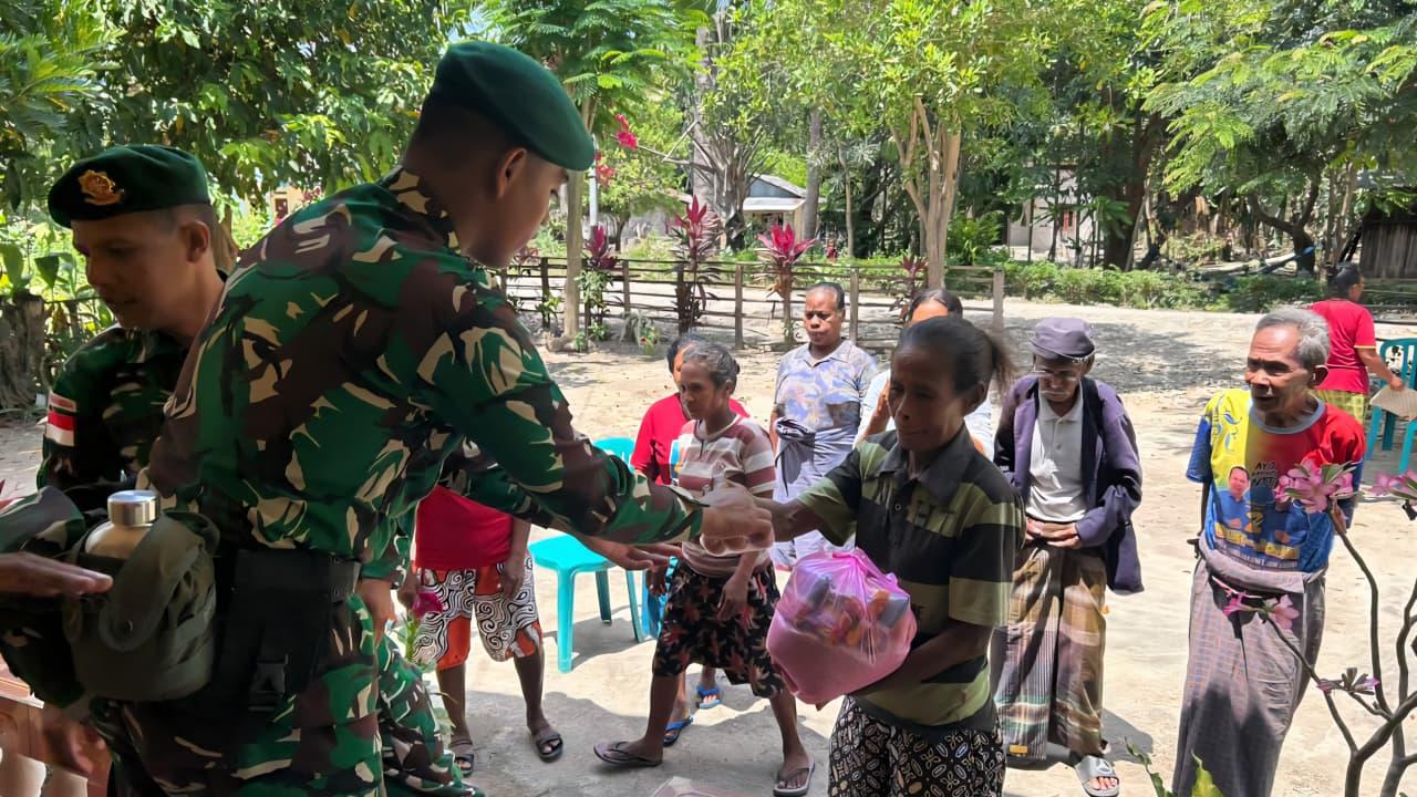 Satgas Pamtas Yonarmed 12 Kostrad Bagikan Sembako dan Buku Tulis untuk Warga Perbatasan Malaka