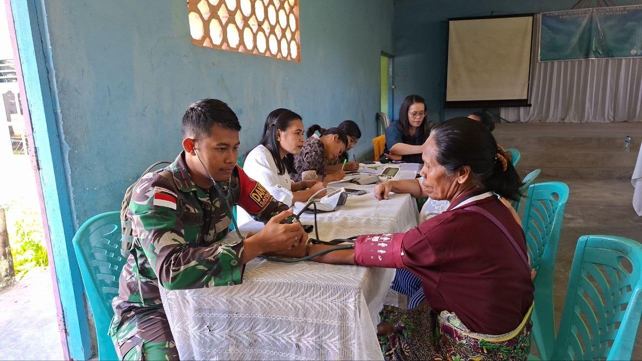 Eban – Makosatgas Pamtas RI-RDTL Sektor Barat bersama dengan Yayasan Tangan Pengharapan melaksanakan pelayanan kesehatan dan konsultasi kesehatan gratis untuk masyarakat sekitar di Desa Eban, Kec. Miomaffo Barat, Kab. TTU. Sabtu (04/10)
