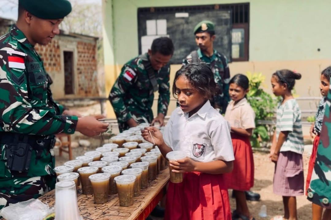 Kapten Arh Restu Anggara menyampaikan, “Kegiatan ini bertujuan untuk membantu memenuhi kebutuhan gizi anak-anak sekaligus mempererat hubungan antara TNI dan masyarakat di wilayah perbatasan RI-RDTL Sektor Barat ini.”