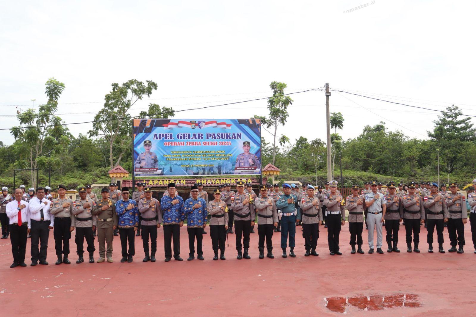 Apel Gelar Pasukan Operasi Seligi 2025 dipimpin langsung oleh Kapolres Bintan. Polres Bintan menurunkan personel gabungan dalam Operasi Zebra Seligi 2025 yang mulai berlangsung selama 14 hari terhitung 17 hingga 30 November 2025. Personel yang dikerahkan terdiri dari anggota Polres Bintan dengan dukungan TNI, Dishub, Satpol PP, Jasa Raharja, dan Lanal Bintan.