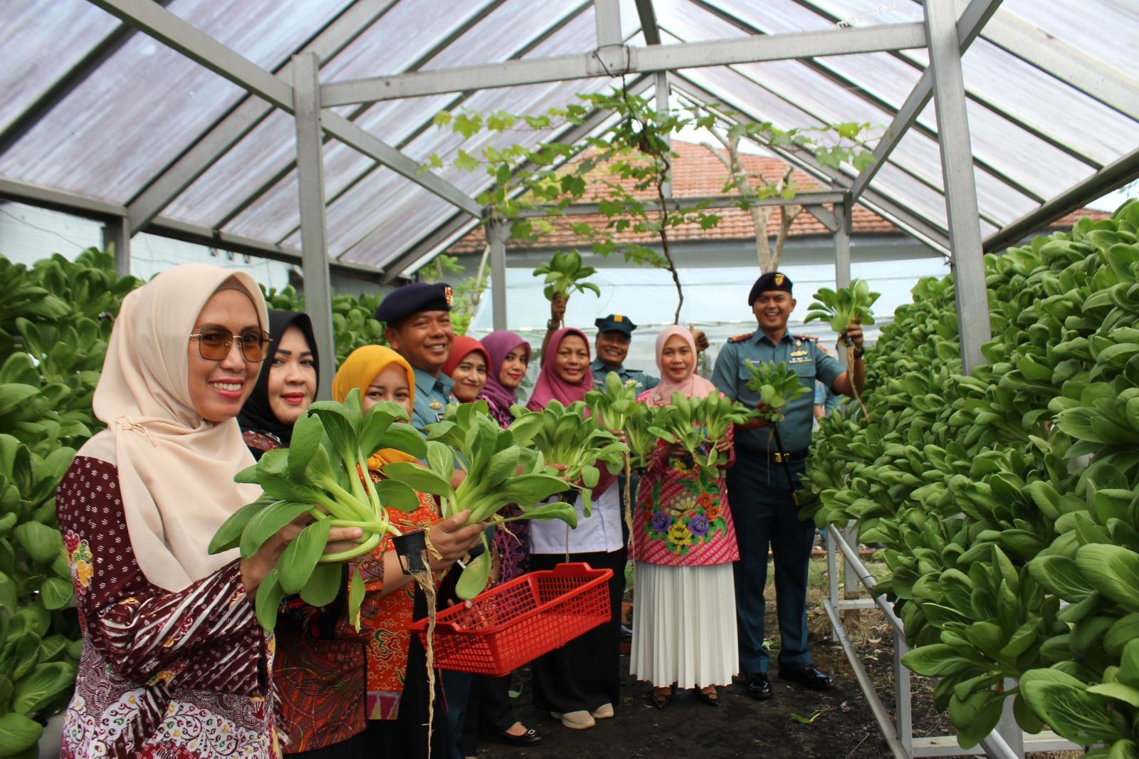 TNI AL, Bengkulu,- Komandan Pangkalan TNI Angkatan Laut Bengkulu Letkol Laut (P) Nurwahidin, S.H., M.Tr.Opsla., bersama dengan Ketua Cabang 4 Daerah Kodaeral II GJKRI Ny. Nurcahyani Nurwahidin, melaksanakan kegiatan Panen Raya Ketahanan Pangan Sayur Hidroponik di Kebun Segoro Rafflesia Tobo Kito, Jalan RE Martadinata No. 10, Kelurahan Kandang, Kecamatan Kampung Melayu, Kota Bengkulu,