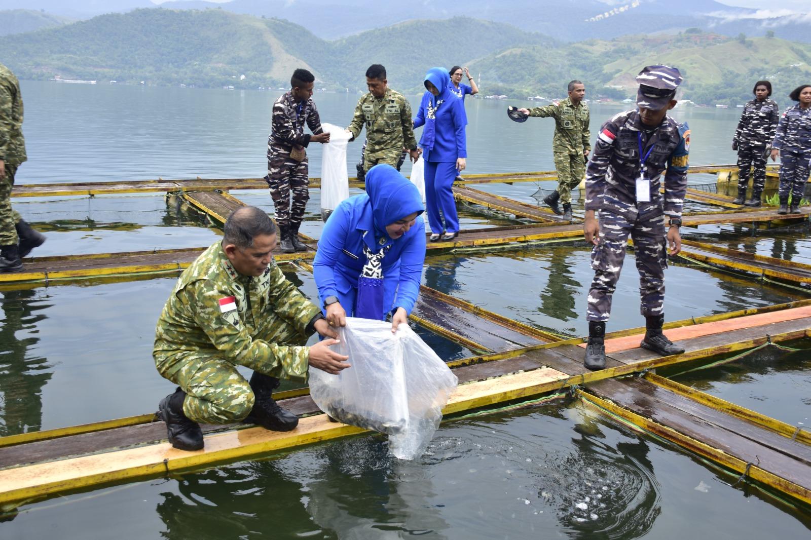 “Penebaran bibit ikan nila di jaring apung ini merupakan langkah nyata Kodaeral X dalam membina masyarakat guna meningkatkan ketahanan pangan dan kesejahteraan masyarakat di Kampung Yoka, Distrik Heram. Sebanyak 6.000 ekor bibit ikan nila telah ditebar kedalam Karamba Jaring Apung Ikan Nila Binaan TNI AL sebagai upaya memperkuat ketahanan pangan masyarakat pesisir,” ujar Dankodaeral X.