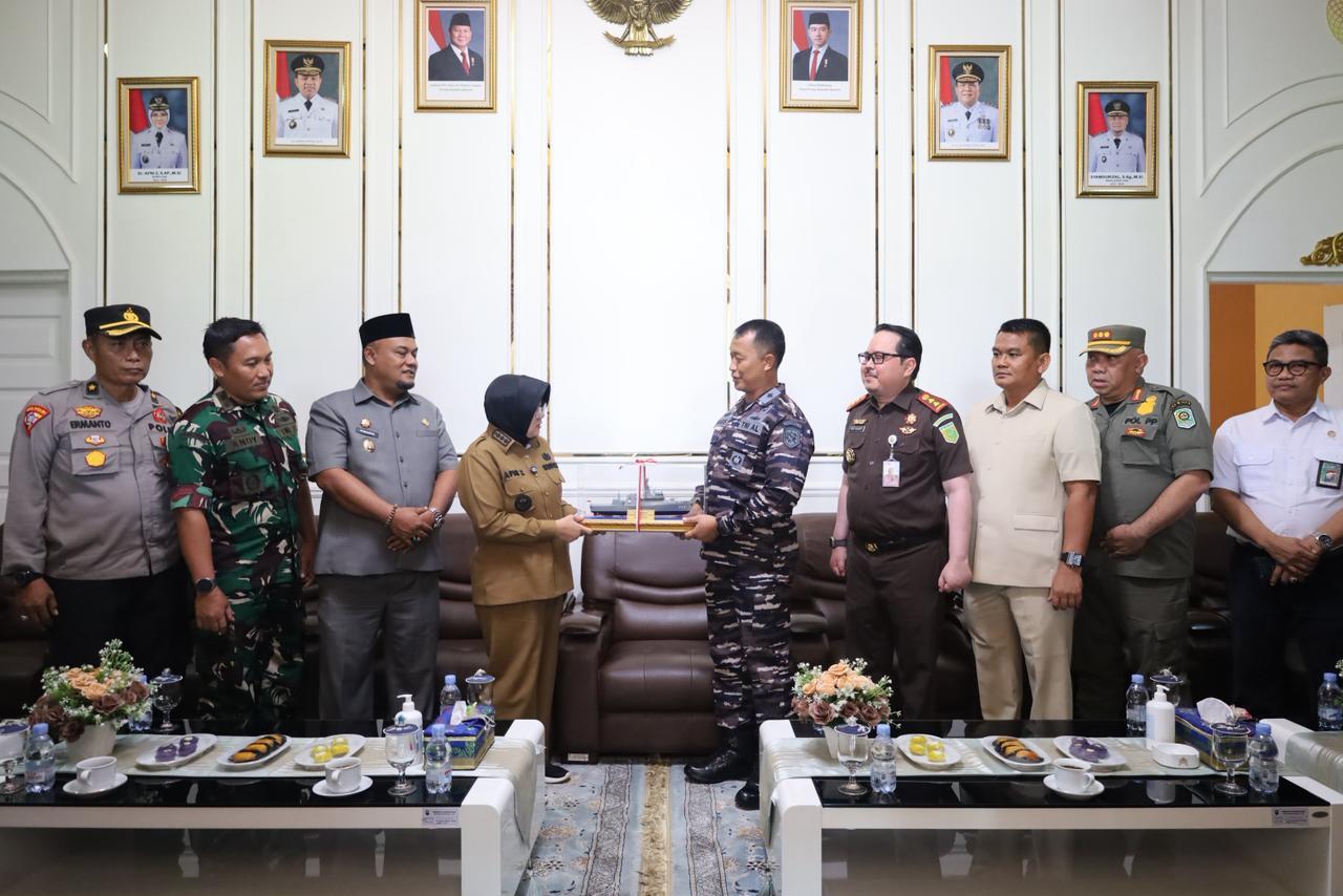 Hangat, ramah dan penuh penghormatan, Bupati Siak Dr. Afni Z, S.A.P., M.Si., sambut kedatangan Danlanal Dumai bersama rombongan. Kunjungan Danlanal Dumai merupakan momentum strategis untuk mempererat hubungan kelembagaan antara Pemerintah Kabupaten Siak dan Lanal Dumai. Berbagai isu strategis serta agenda kerjasama menjadi perbincangan hangat kedua pemimpin, mulai dari bidang potensi maritim, ancaman keamanan wilayah perairan Kabupaten Siak serta beberapa agenda pembangunan infrastruktur yang akan dilaksanakan di Kabupaten Siak.