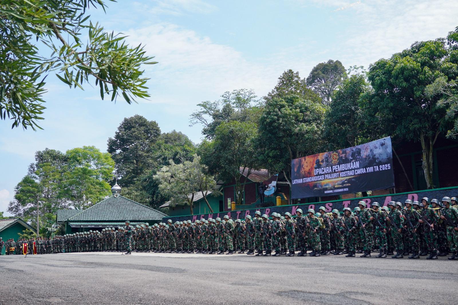 Kepala Staf Kostrad (Kaskostrad) Mayjen TNI Sachono, S.H., M.Tr. (Han)., memimpin Upacara Pembukaan Latihan Standardisasi Prajurit Kostrad Cakra XVII TA 2025 di Menlatput Kostrad Sanggabuana, Karawang-Jabar. Rabu (3/12/2025).