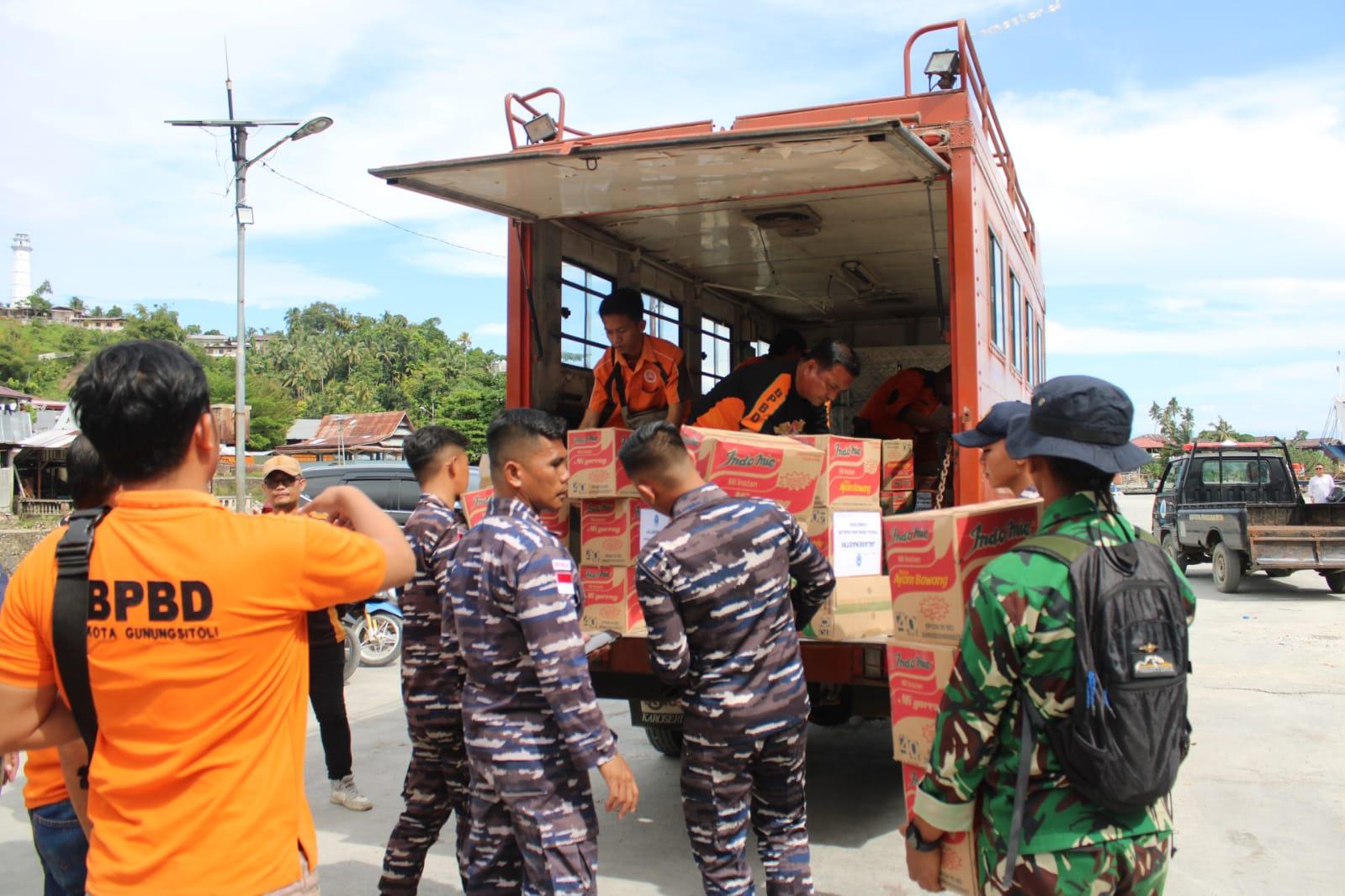 Bantuan yang dibawa antara lain berasal dari Koarmada RI, Kodaeral III, Pusinmar, Jalasenastri TNI AL, Kormar, serta Danlanal Nias. Bantuan tersebut berupa beras, telur, mie instan, obat-obatan, air mineral, pakaian layak pakai, selimut, dan berbagai kebutuhan pokok lain yang sangat dibutuhkan masyarakat. Dari Dokpusbekbar memberi bantuan 1 unit perahu karet beserta 1 unit mesin tempel yang diserahkan ke Lanal Nias.