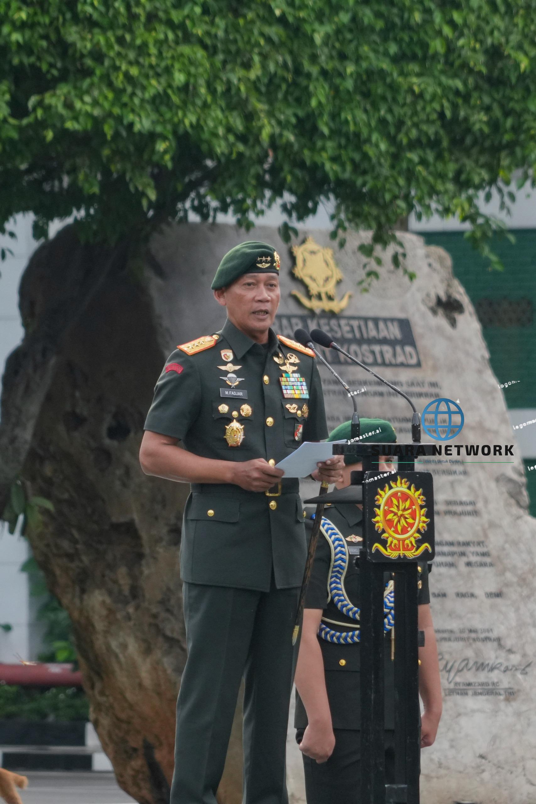 Jakarta – Panglima Kostrad (Pangkostrad) Letjen TNI Mohammad Fadjar, MPICT. bertindak sebagai Inspektur Upacara dalam rangka memperingati Hari Juang TNI AD Tahun 2025 di Markas Kostrad, Gambir, Jakarta Pusat. Senin (15/12/2025).