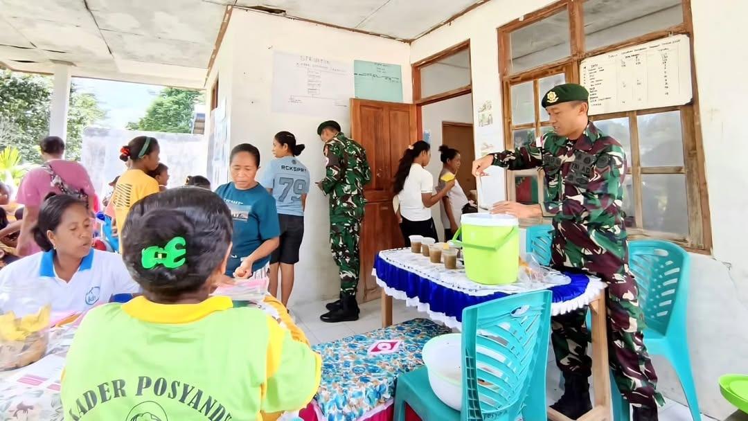 Satgas Pamtas RI–RDTL Sektor Timur Yonarmed 12 Kostrad melalui Pos Turiscain melaksanakan kegiatan pelayanan kesehatan kepada balita di Posyandu Saunluli, Desa Maumutin, Kecamatan Raihat, Kabupaten Belu, Nusa Tenggara Timur. Kegiatan ini merupakan bentuk kepedulian Satgas dalam mendukung kesehatan dan tumbuh kembang anak di wilayah perbatasan.