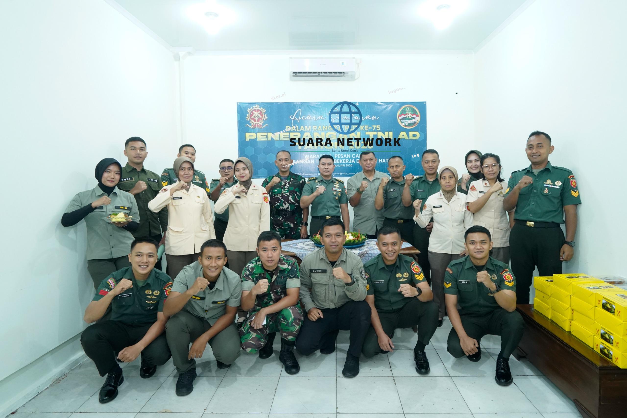 Jakarta — Penerangan Kostrad (Penkostrad) menggelar syukuran Hari Ulang Tahun (HUT) ke-75 Penerangan Angkatan Darat di Kantor Penkostrad, Makostrad, Jalan Medan Merdeka Timur No. 3, Gambir, Jakarta Pusat, Selasa (13/1/2026).
