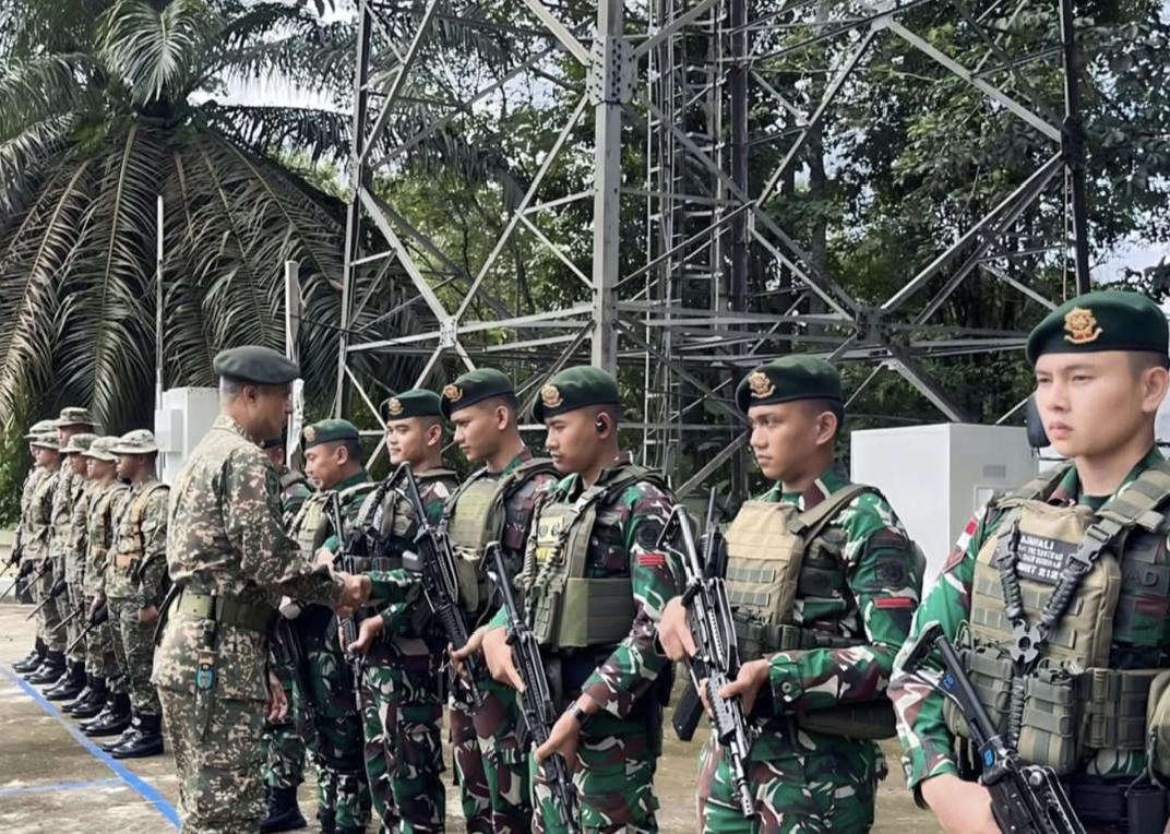 Kunjungan ini bertujuan meninjau secara langsung kondisi pos dan personel yang bertugas, sekaligus memantau kesiapan serta kinerja dalam menjaga keamanan wilayah perbatasan Indonesia–Malaysia.