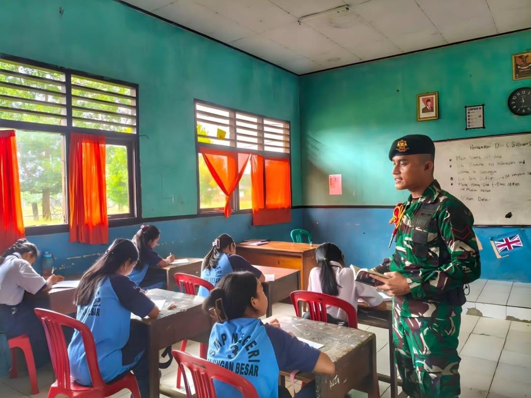 Dipimpin Batih SSK-1 Pos Koki Sajingan Terpadu, Sertu Dame Handoko Sitorus, para prajurit menyambangi SMPN 3 Sajingan untuk memberikan pembelajaran bahasa Jerman kepada para siswa. Kehadiran prajurit disambut antusias, menciptakan suasana belajar yang interaktif dan penuh semangat.