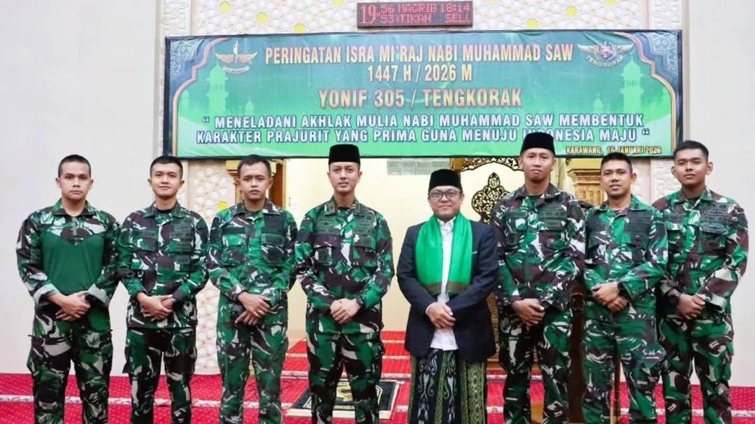 Karawang — Yonif 305 Kostrad menggelar Peringatan Isra Mi’raj Nabi Muhammad SAW 1447 H/2026 M di Masjid Al-Badar Yonif 305 Kostrad, Kamis (16/1/2026).