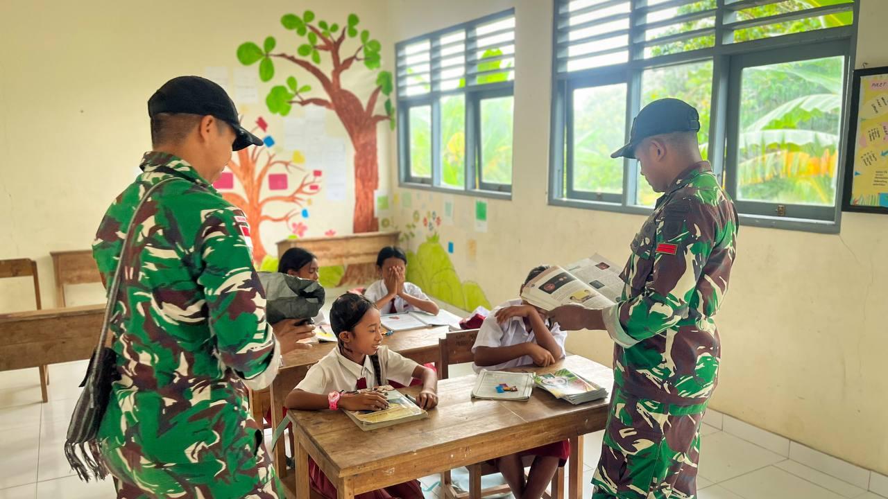 Satgas Pamtas RI–RDTL Sektor Barat Yonarhanud 2 Kostrad melalui Pos Baen secara aktif terjun langsung menjadi tenaga pendidik bagi siswa-siswi SDK Sunkaen, Desa Sunkaen, Kecamatan Bikomi Ninulat, Kabupaten TTU, Jumat (23/01/2026).