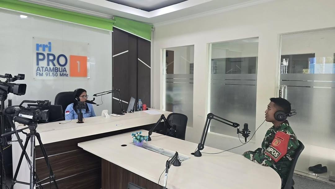 Belu, NTT — Satgas Pamtas RI–RDTL Sektor Timur Yonarmed 12 Kostrad melaksanakan kegiatan podcast di RRI Atambua yang bertempat di Umanen, Kecamatan Atambua Barat, Kabupaten Belu, Nusa Tenggara Timur. Kegiatan ini mengangkat topik “Upaya Pencegahan Penyelundupan dan Perlintasan Ilegal di Wilayah Perbatasan”, sebagai bagian dari komitmen Satgas dalam memberikan edukasi dan informasi kepada masyarakat terkait pentingnya menjaga keamanan dan ketertiban di kawasan perbatasan RI–RDTL. Rabu (28/01/2026).
