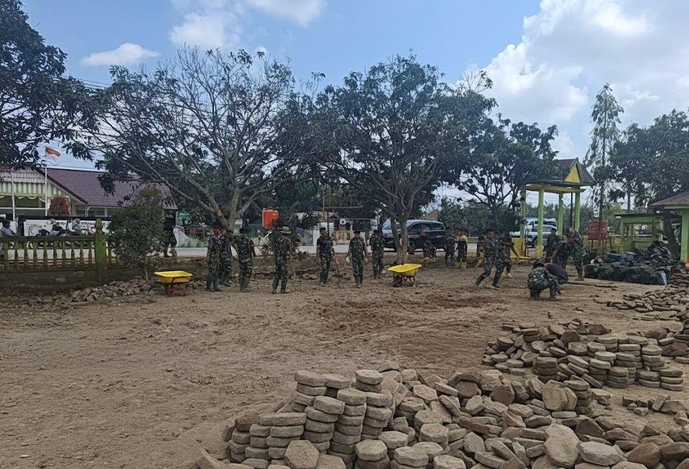 Batalyon Zeni Tempur 10 Kostrad Pasang Paving Dan Bersihkan Sekolah Pasca Bencana Banjir Bandang Aceh Tamiang