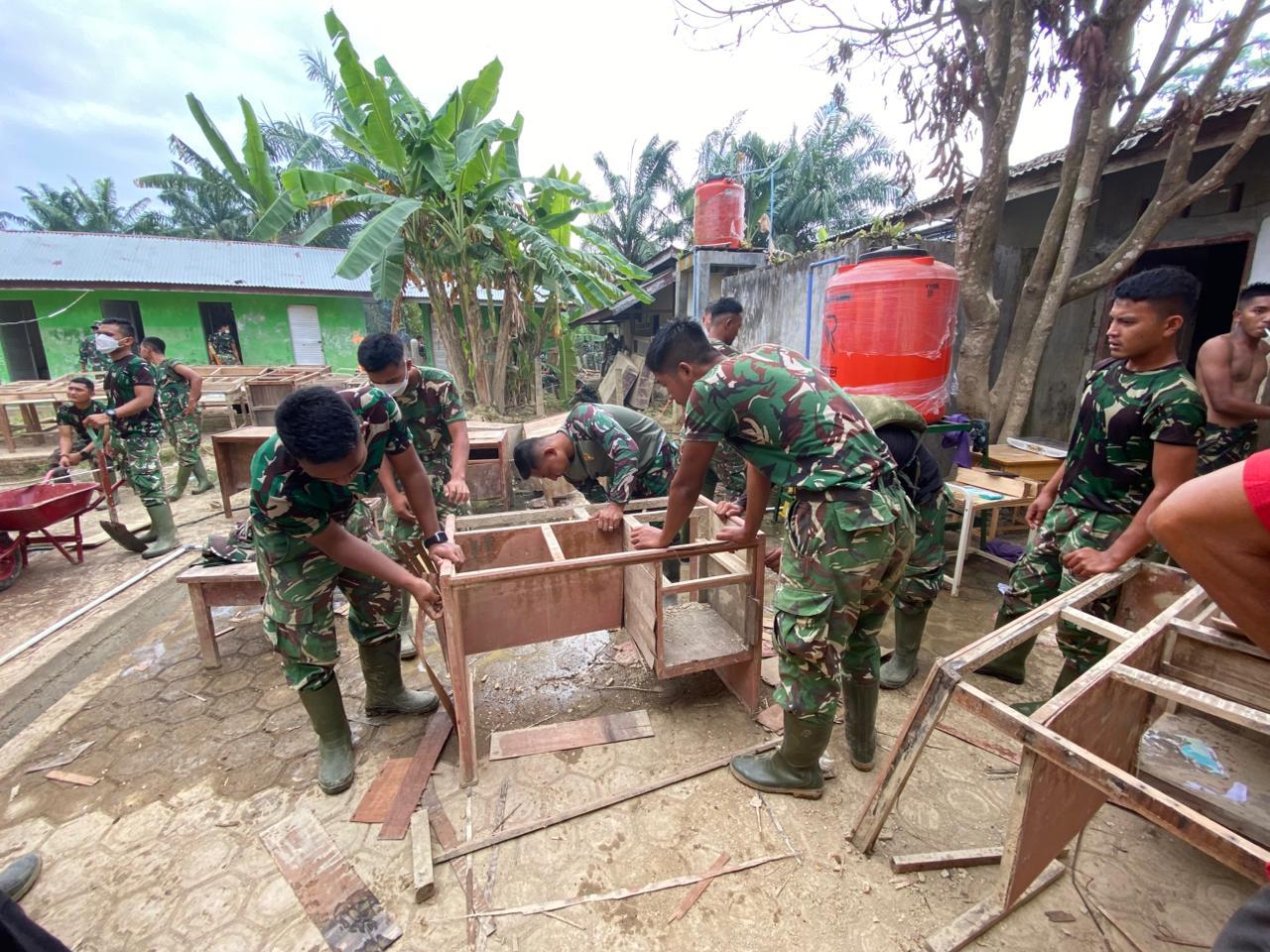 Para prajurit Zipur 10 bekerja dengan penuh dedikasi dari pagi hingga malam demi mempercepat pemulihan fasilitas sekolah. Mereka berjibaku menyisir setiap ruangan untuk membersihkan endapan lumpur tebal serta merenovasi ruangan kelas yang hancur akibat banjir bandang. Fokus utama prajurit zipur 10 adalah memastikan seluruh lingkungan belajar kembali higienis dan aman untuk digunakan kembali oleh para siswa.