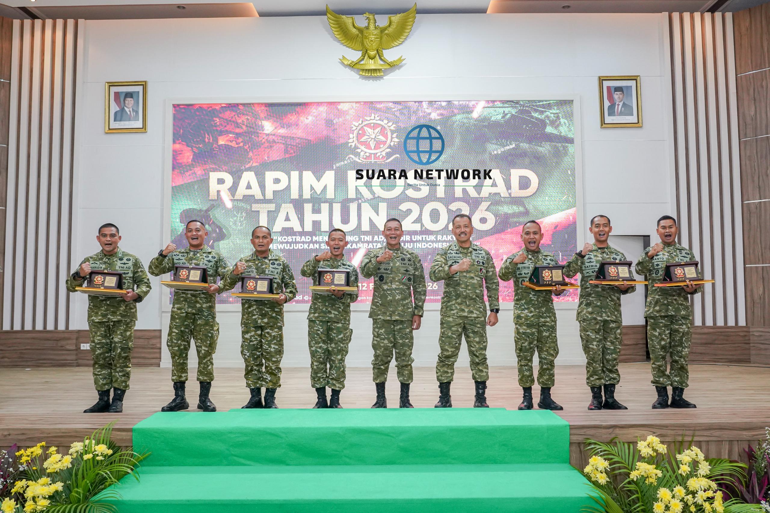 Jakarta – Panglima Kostrad (Pangkostrad) Letjen TNI Mohammad Fadjar, MPICT., memimpin Rapat Pimpinan (Rapim) Kostrad Tahun Anggaran 2026 di Aula Mandala, markas Kostrad, Gambir, Jakarta Pusat, Kamis (12/2/2026).