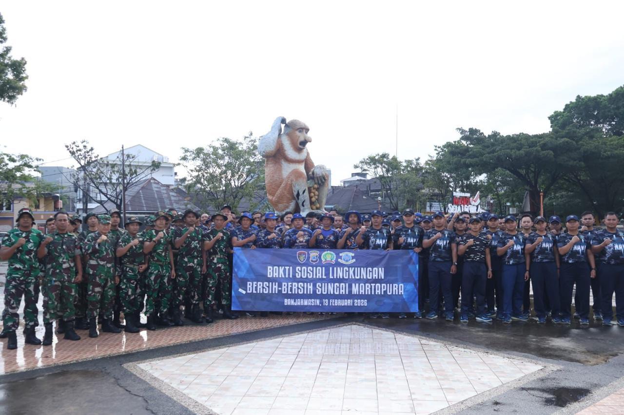 TNI AL, Banjarmasin,- Dalam rangka peduli kebersihan di wilayah Perairan, Lanal Banjarmasin bersama Korem 101/Antasari dan Ditpolairud Polda Kalsel melaksanakan kegiatan Bakti Sosial Lingkungan Bersih-bersih Sungai Martapura, bertempat di Jalan Kapten Piere Tendean, Patung Bekantan, Kota Banjarmasin, Provinsi Kalimantan Selatan, Jumat (13/02/2026).