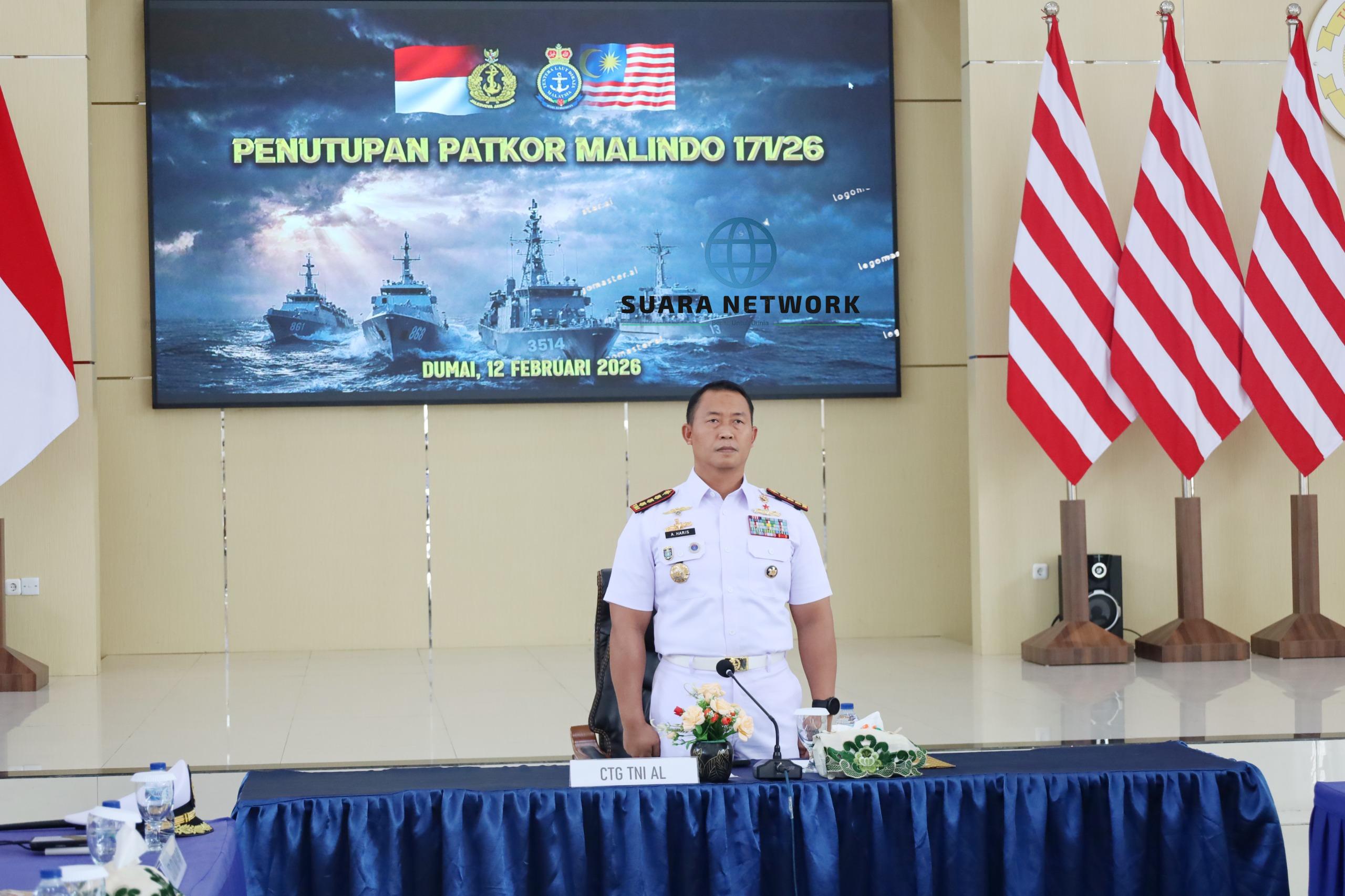 TNI AL, Dumai,- Bertempat di Gedung Wijaya Kusuma, Markas Komando Pangkalan TNI Angkatan Laut Dumai, Komandan Lanal Dumai Kolonel Laut (P) Abdul Haris, S.E., M.M.D.S., memimpin secara virtual kegiatan Penutupan Patroli Terkoordinasi Malaysia–Indonesia (Patkor Malindo) Ke-171/26 Tahun 2026. Kegiatan tersebut menjadi penanda berakhirnya rangkaian operasi patroli bersama antara TNI Angkatan Laut dan Tentera Laut Diraja Malaysia (TLDM), Kamis (12/02/2026).