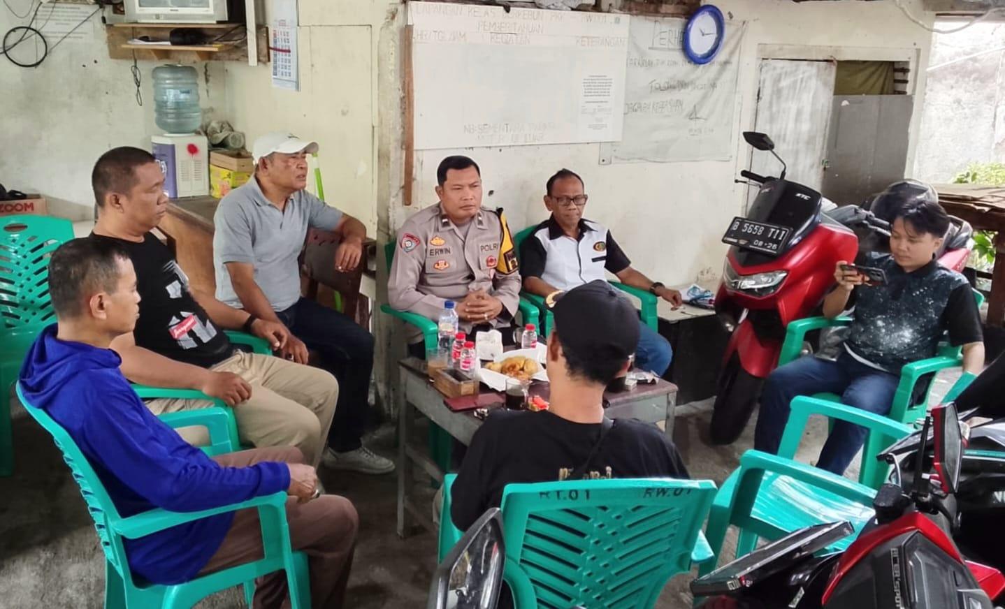Jakarta – AIPDA Erwin, Bhabinkamtibmas Kelurahan Palmeriam, melaksanakan sambang dan himbauan harkamtibmas kepada pengurus RW 01, para Ketua RT, serta tokoh masyarakat setempat di Jalan Gugus Depan 2 RT 04 RW 01 Kelurahan Palmeriam, Kecamatan Matraman. Rabu (18/02) pagi.