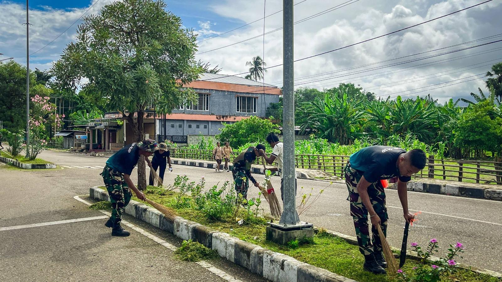 Adapun sasaran kegiatan meliputi pembersihan sepanjang jalan raya Desa Wini hingga area sekitar wilayah perbatasan. Personel TNI bersama warga tampak bergotong royong membersihkan sampah dan merapikan lingkungan demi menciptakan kawasan yang bersih dan nyaman.