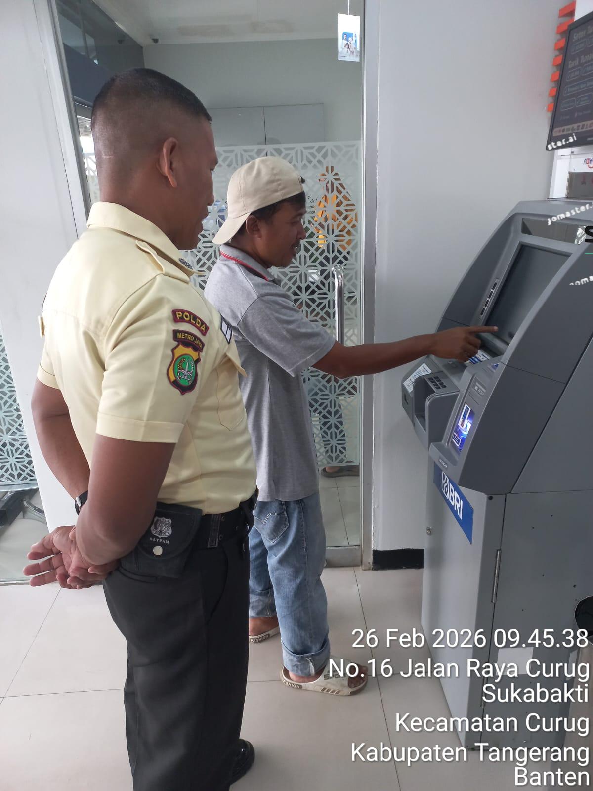TANGERANG – Komitmen dalam memberikan pelayanan prima sekaligus meningkatkan literasi digital nasabah terus diwujudkan oleh Bank Rakyat Indonesia (BRI). Satpam BRI Unit Curug menunjukkan kepedulian dengan membantu serta mengedukasi nasabah dalam melakukan transaksi penarikan uang tanpa kartu di Galeri ATM.