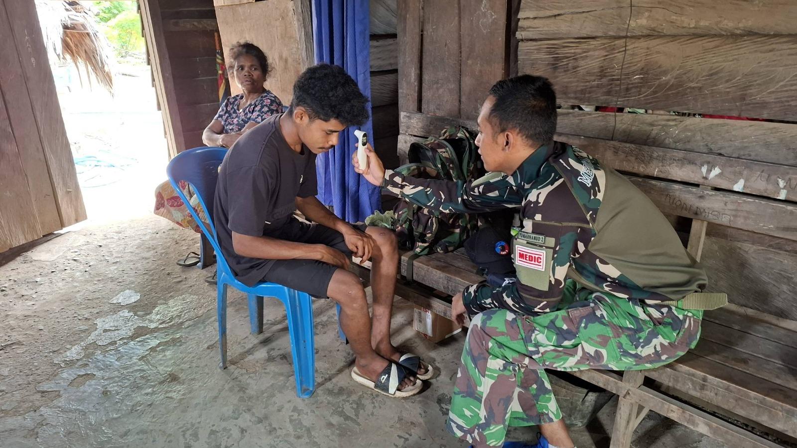 ‎Personel dari Pos Oepoli Sungai tidak menunggu warga datang ke pos. Sebaliknya, mereka menyandang tas medis dan berjalan kaki menyusuri jalanan desa demi mengetuk pintu rumah warga satu per satu. Program Kesehatan Keliling ini bukan sekadar rutinitas formalitas. Kehadiran tim medis TNI adalah solusi di tengah keterbatasan fasilitas kesehatan.