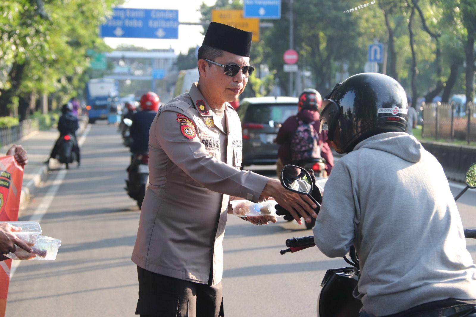 Pembagian takjil kepada para pengguna jalan dan masyarakat sekitar dimulai pada pukul 16.30 WIB. Masyarakat yang melintas tampak antusias menerima takjil yang dibagikan oleh personel Ditpamobvit Polda Metro Jaya.