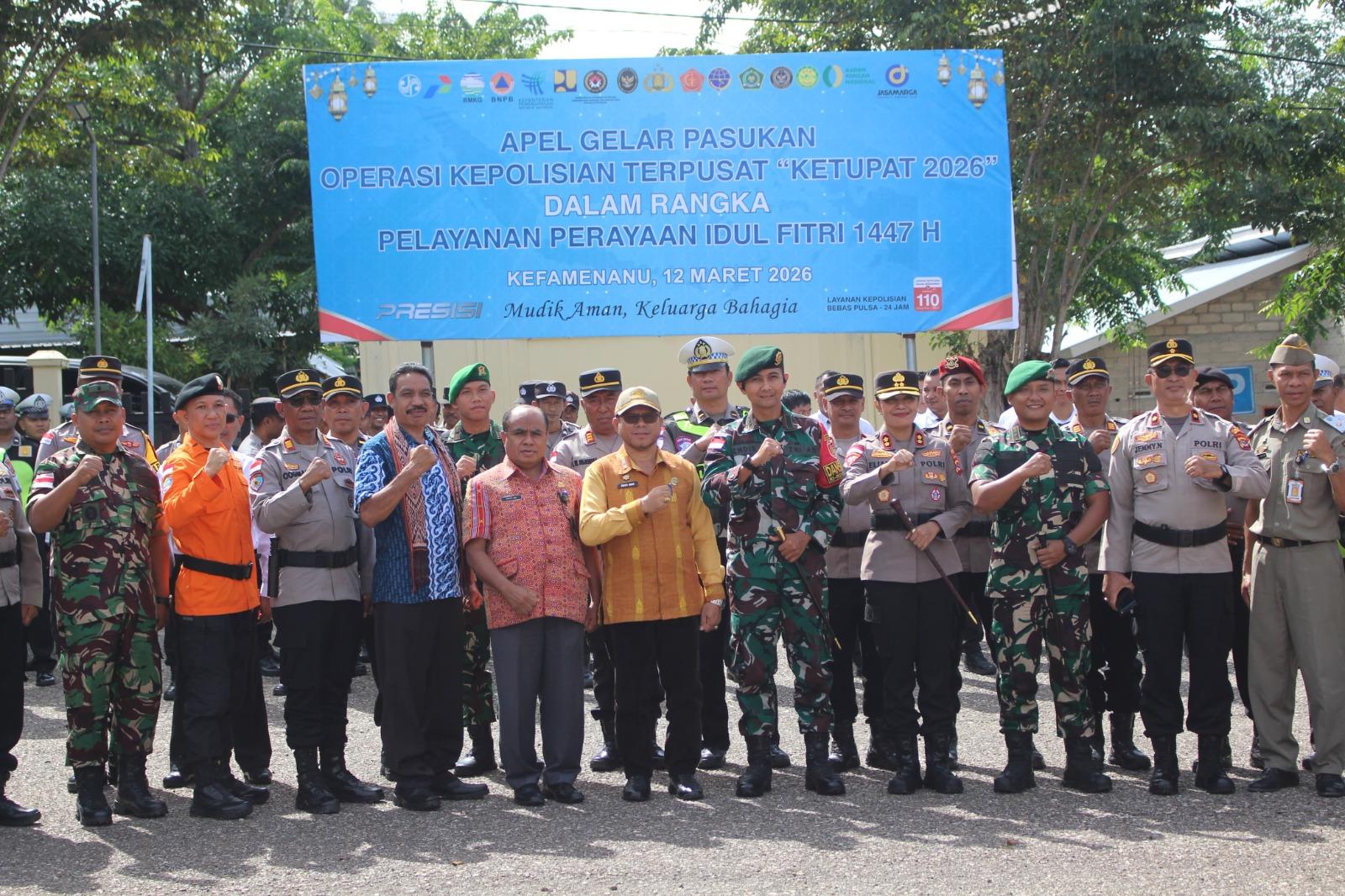 Kefamenanu – Dansatgas Pamtas RI–RDTL Sektor Barat Yonarhanud 2 Kostrad, Letkol Arh Endis Fahrul Rizal, S.Hub.Int., M.Sc., menghadiri Apel Gelar Pasukan Operasi Ketupat 2026 dalam rangka pengamanan perayaan Idul Fitri 1447 H yang dilaksanakan di Mapolres TTU, Kabupaten Timor Tengah Utara (TTU). Senin (16/03/2026).