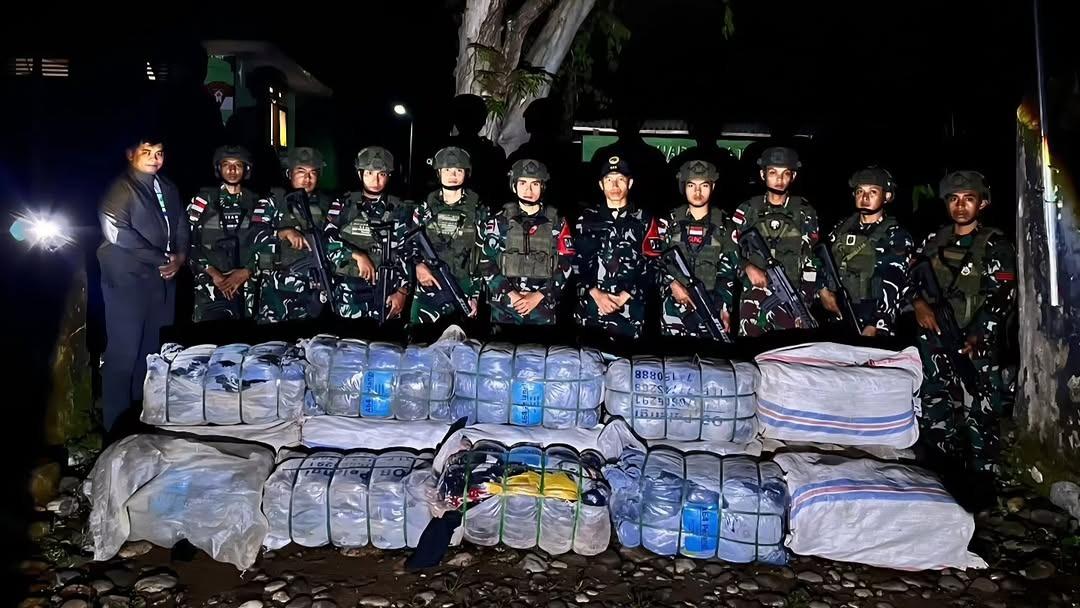 Belu, NTT – Satgas Pamtas RI–RDTL Sektor Timur Yonarmed 12 Kostrad kembali menunjukkan kesigapan dalam menjaga keamanan wilayah perbatasan dengan berhasil menggagalkan upaya penyelundupan 15 karung pakaian bekas (ball press) dari Timor Leste menuju Indonesia.