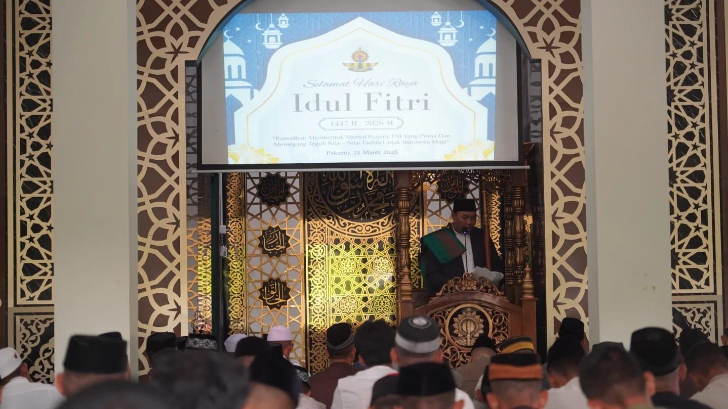 Gowa – Menyambut Hari Raya Idul Fitri 1447 H, Panglima Divisi Infanteri 3 Kostrad Mayjen TNI Bagus Suryadi Tayo, M.Sc., melaksanakan Shalat Idul Fitri bersama prajurit dan keluarga besar Divif 3 Kostrad di Masjid Al-Fatih, Pakatto, Kabupaten Gowa, Sulawesi Selatan, Sabtu (21/03/2026).