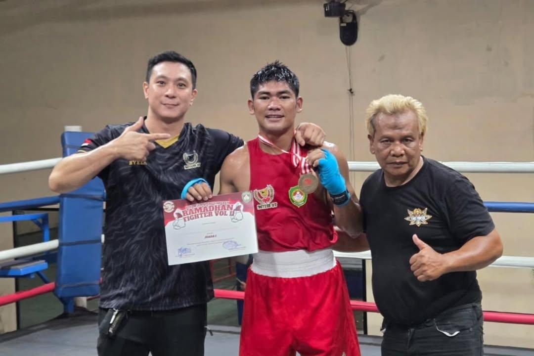 Sukoharjo — Prajurit Yonif 413/Bremoro Kostrad, Pratu Muhammad Alwi kembali mengharumkan nama satuan dengan meraih Juara 1 pada ajang Tinju Ramadhan Fighter Vol. II tingkat Kabupaten Sukoharjo, di kelas 60–64 kg. Rabu (25/03/2026).