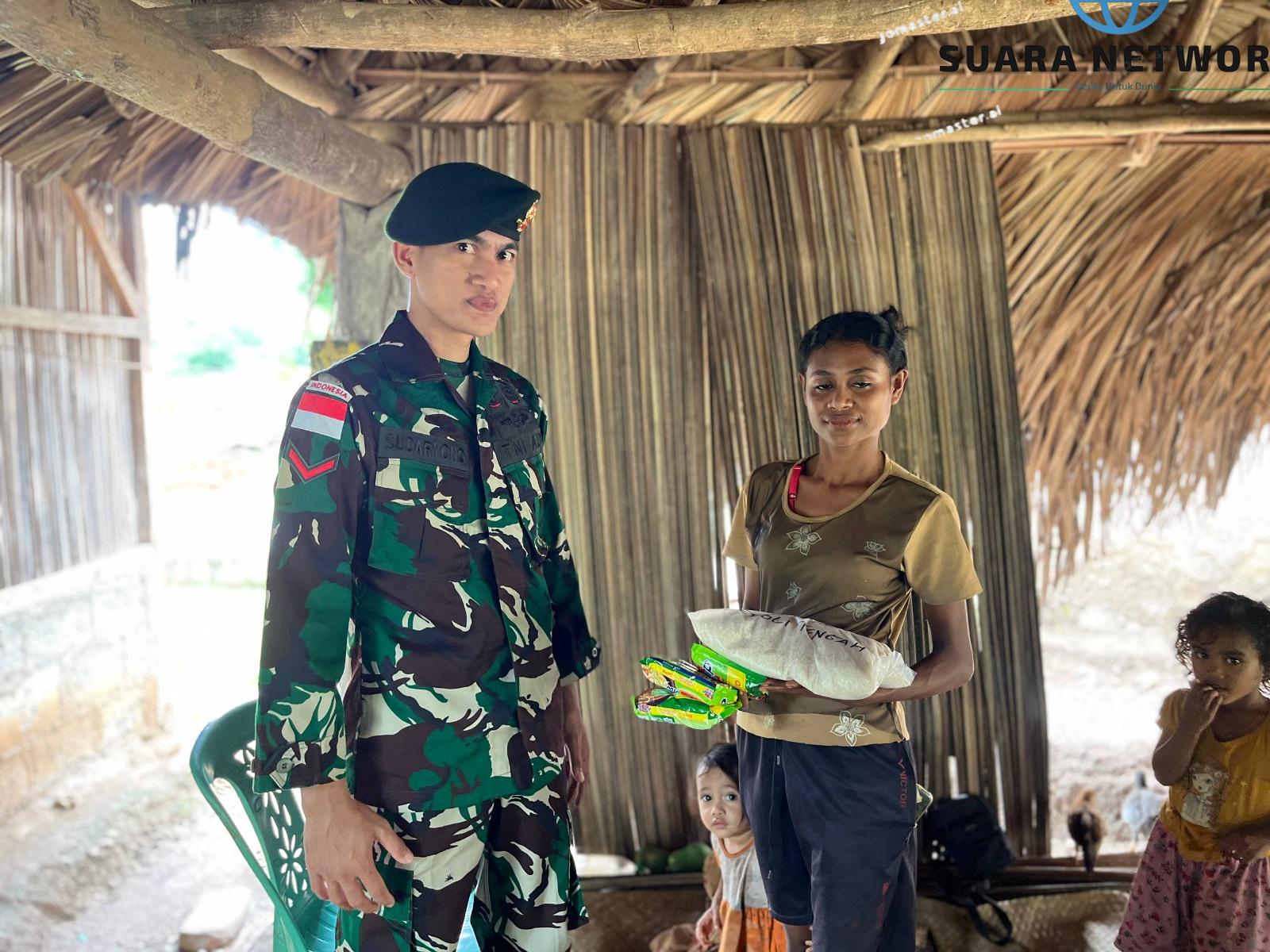 Netemnanu — Satgas Pamtas RI–RDTL Sektor Barat Yonarhanud 2 Kostrad Pos Oepoli Tengah melaksanakan kegiatan sosial berupa pembagian beras kepada masyarakat kurang mampu di Desa Netemnanu Utara, Kecamatan Amfoang Timur, Kabupaten Kupang, Kamis (26/03/2026).
