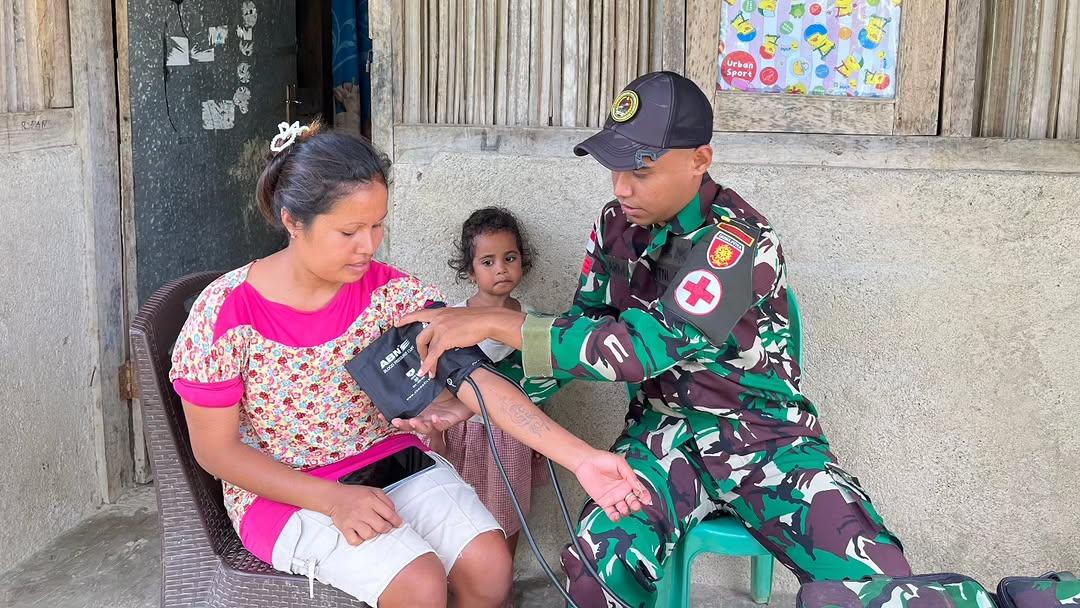 Belu, NTT – Wujud kepedulian terhadap kesehatan masyarakat perbatasan kembali ditunjukkan oleh Satgas Pamtas RI–RDTL Sektor Timur Yonarmed 12 Kostrad melalui Pos Nananoe dengan melaksanakan pelayanan kesehatan keliling di Desa Nanaenoe, Kecamatan Nanaet Dua Besi, Kabupaten Belu, NTT. Selasa (31/03/2026).